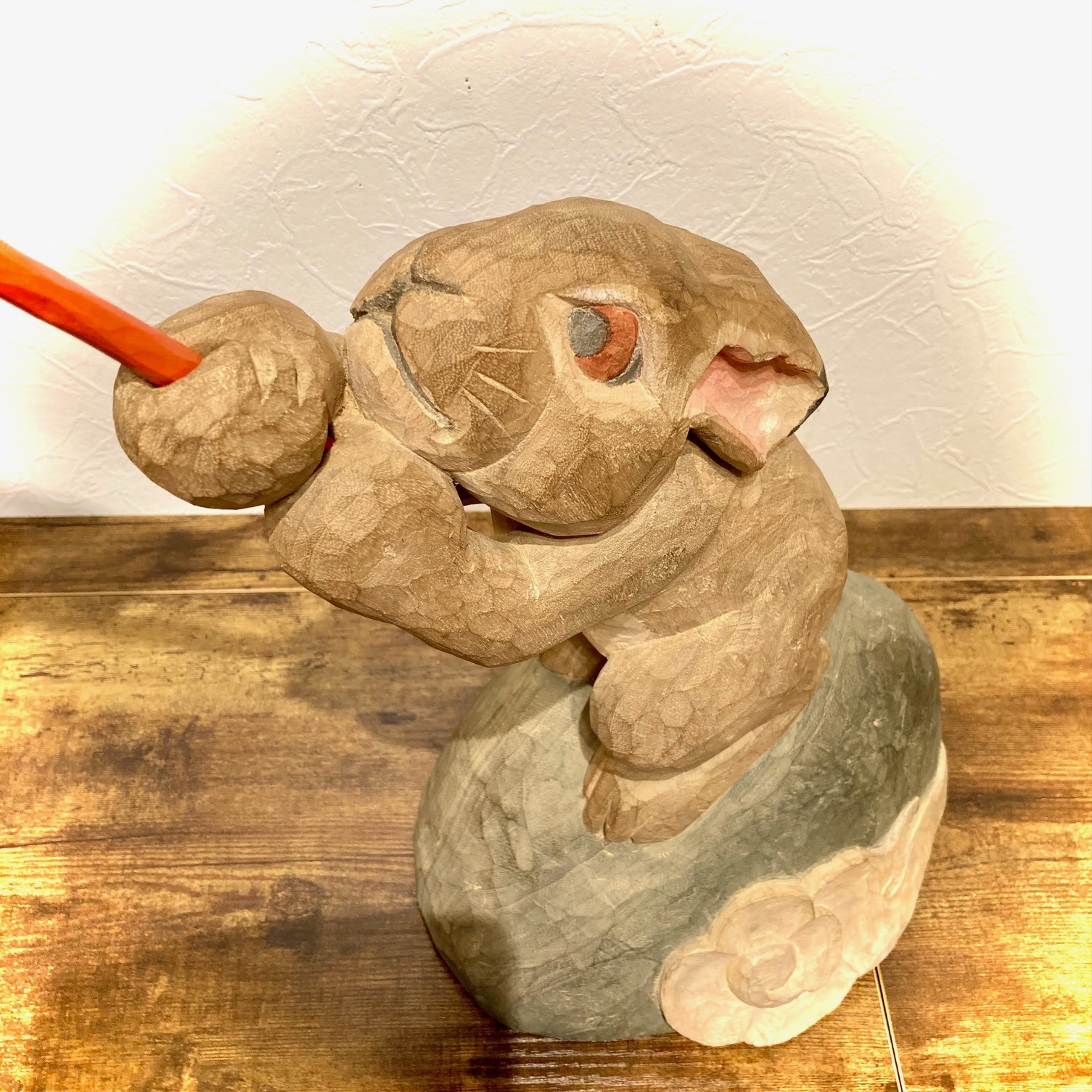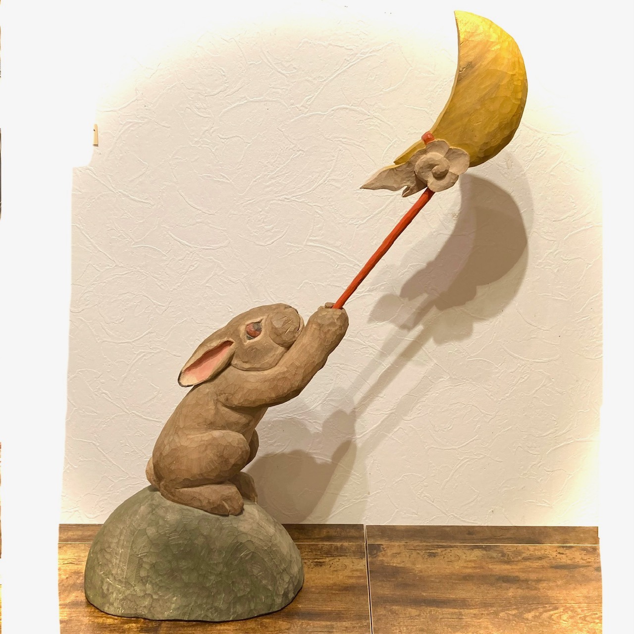 Woodsculpture by Norimasa Sasaki, "Tsukitsukamaeta-Usagi", Camphor