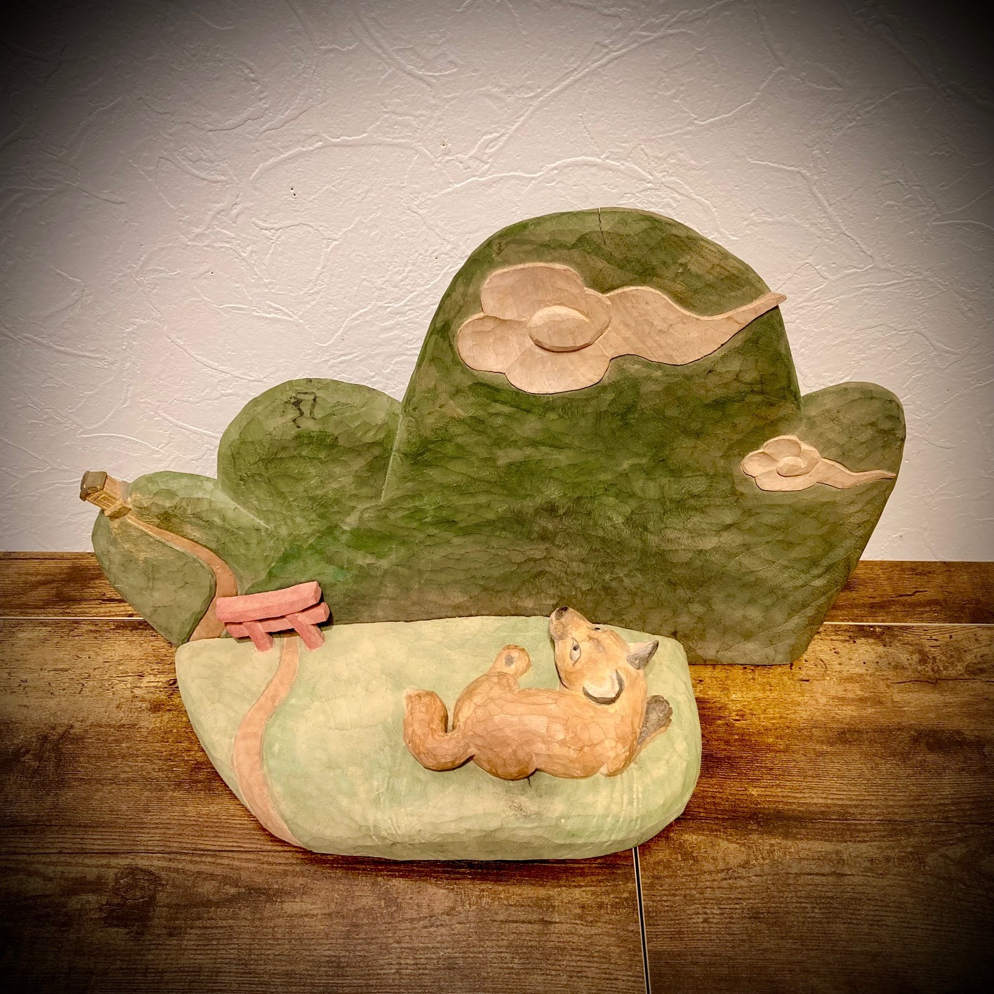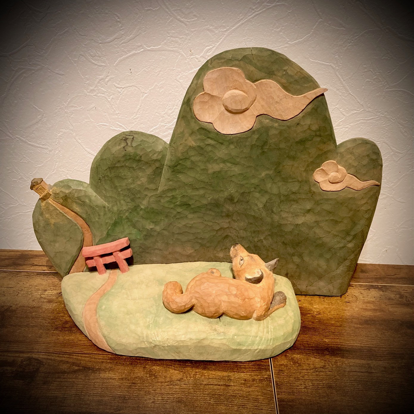 Woodsculpture by Norimasa Sasaki, "Kitsunenosumuyama", Camphor